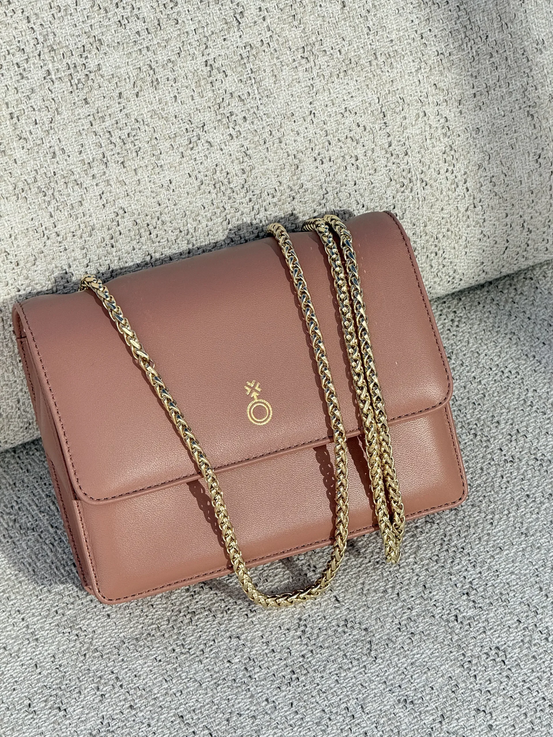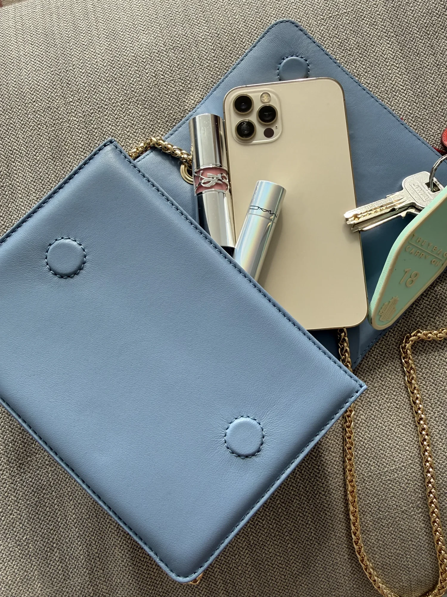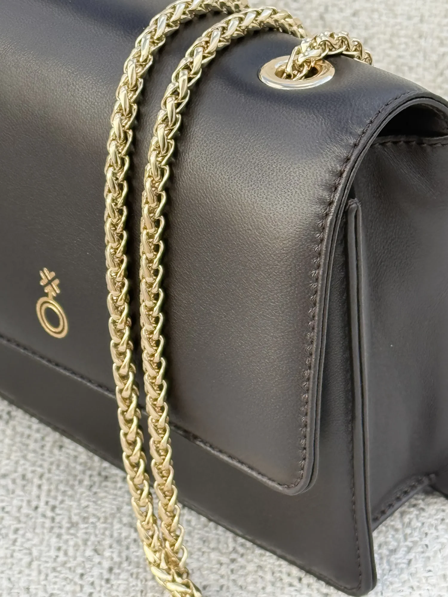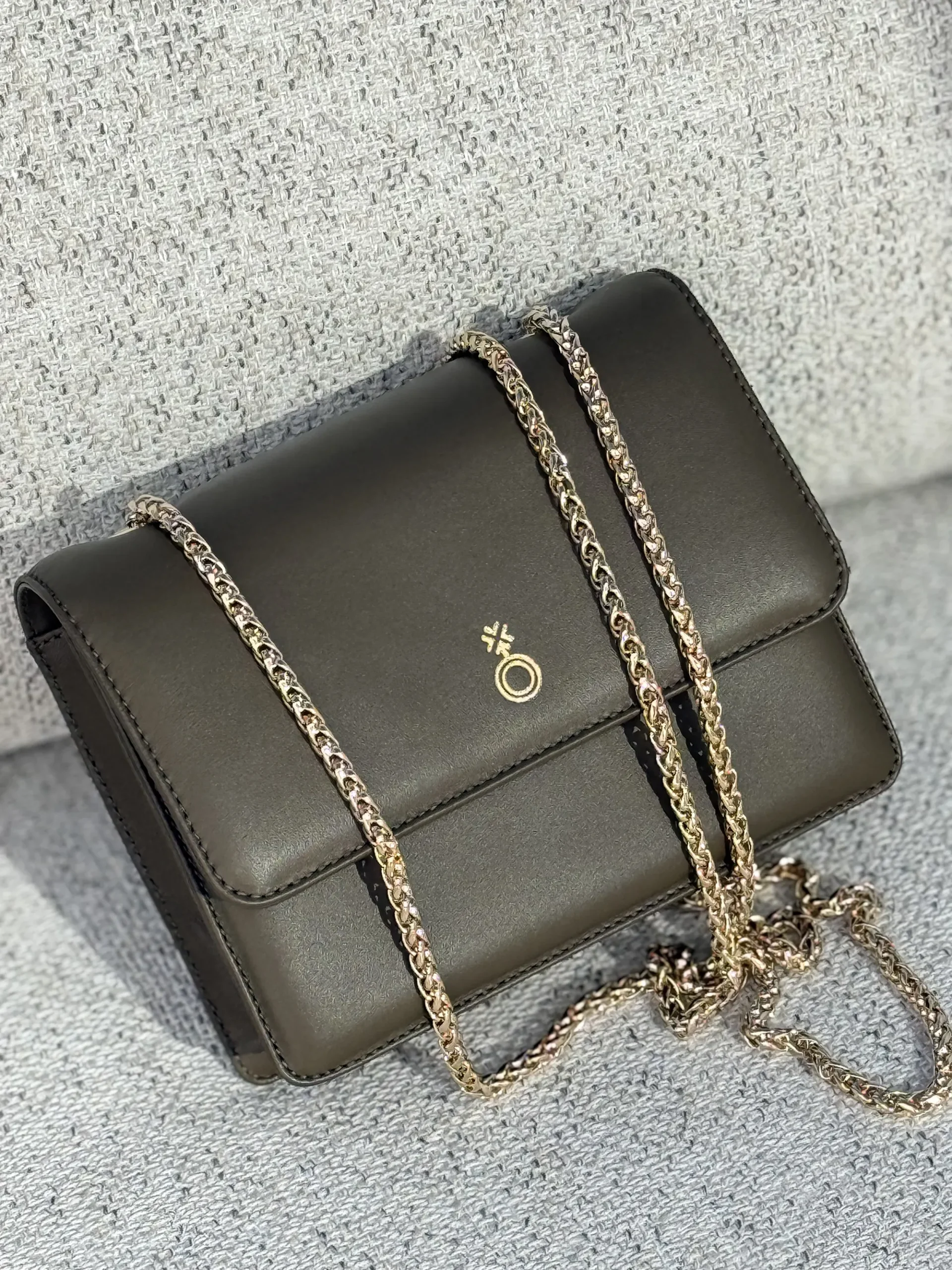 Confeccionado en napa de cordero ultra suave, con un acabado de lujo que destaca por su tacto sedoso y su caída impecable. La silueta estructurada tipo sobre y los pespuntes limpios realzan su diseño minimalista, mientras que la cadena metálica en tono dorado aporta un toque sofisticado y versátil, perfecto para llevar al hombro o cruzado e incluso en la mano.