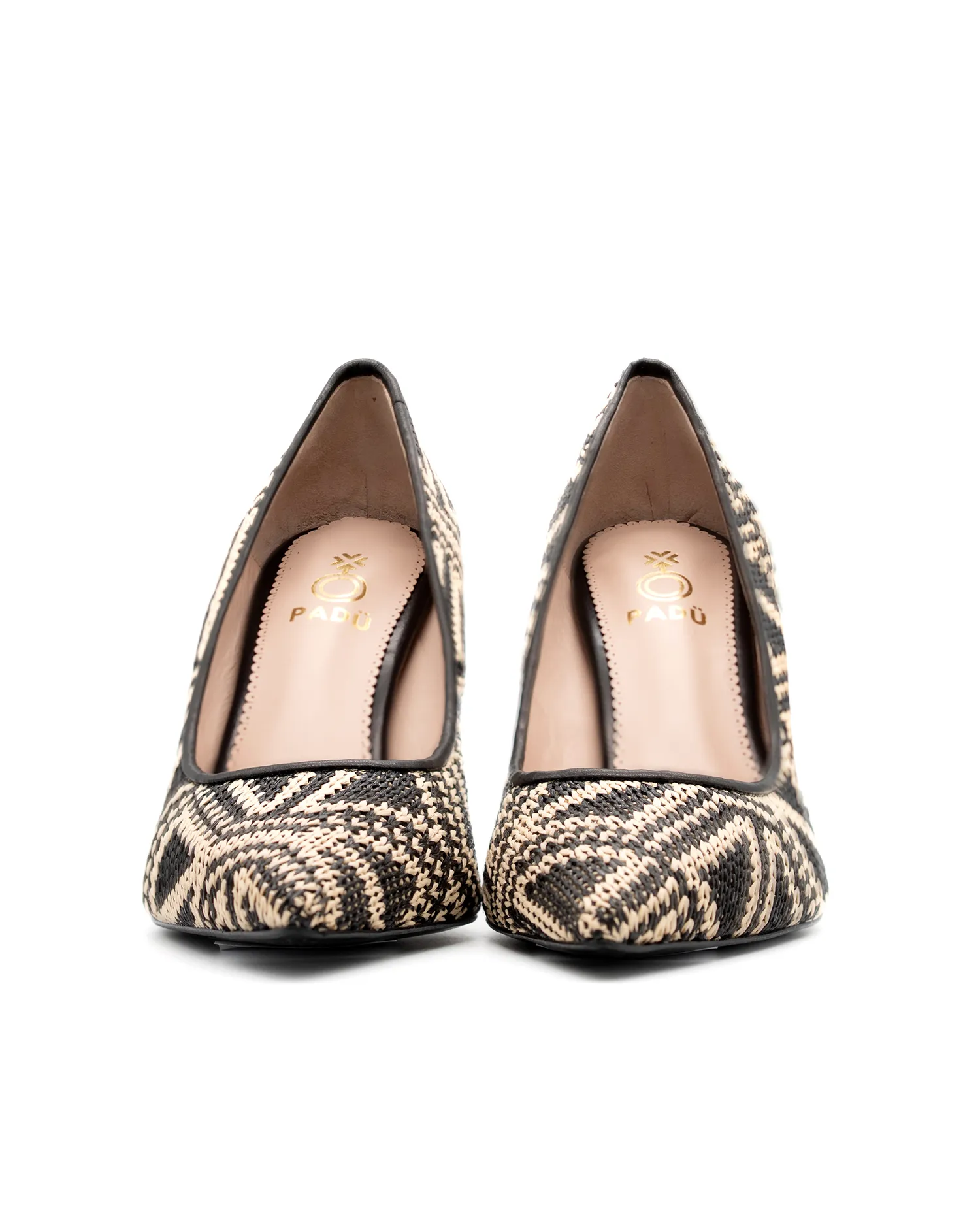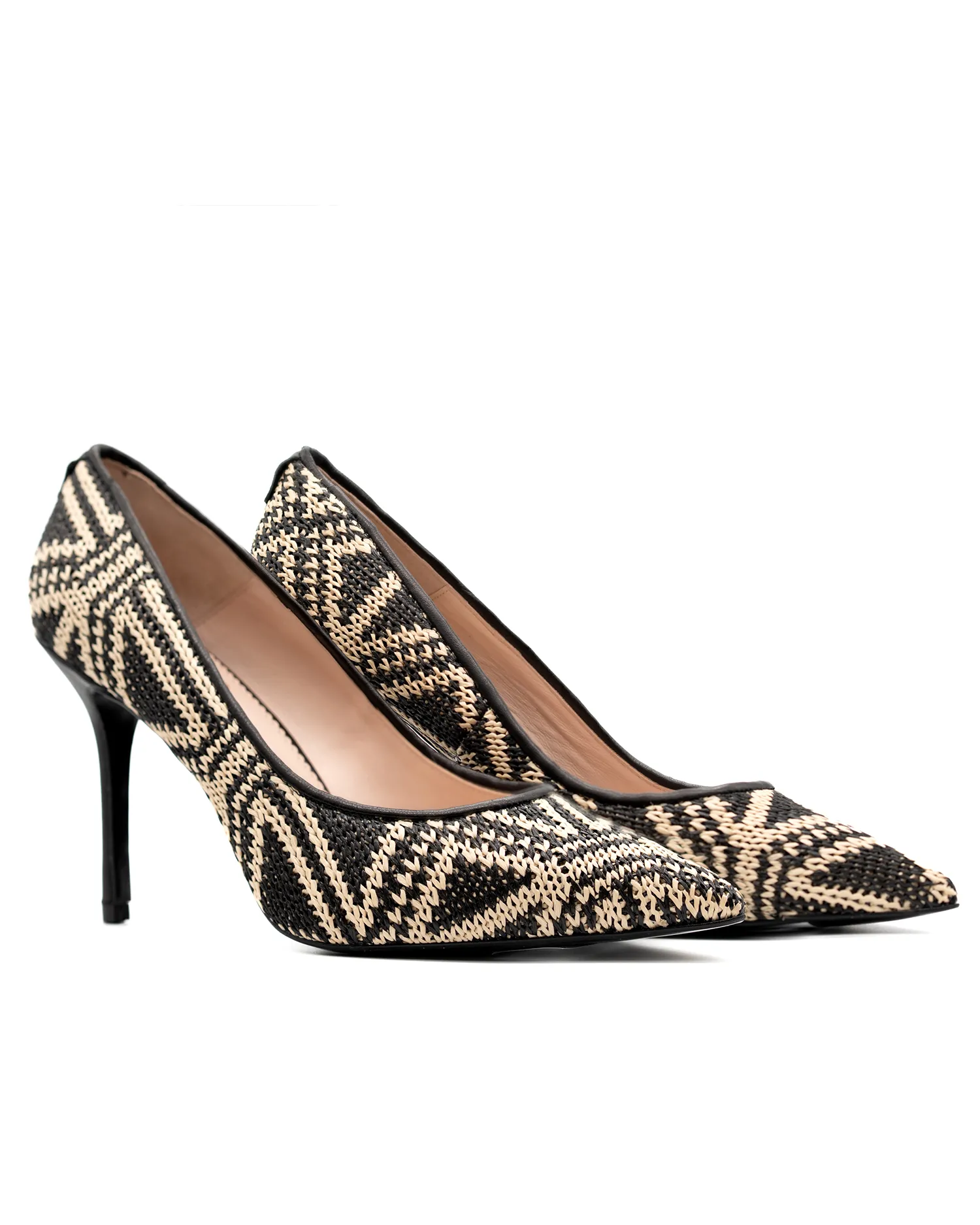 Stiletto elaborado en rafia natural con acabado estructurado y suave. Aporta frescura sin renunciar a la elegancia, ideal para looks de día, eventos al aire libre o escapadas con estilo.