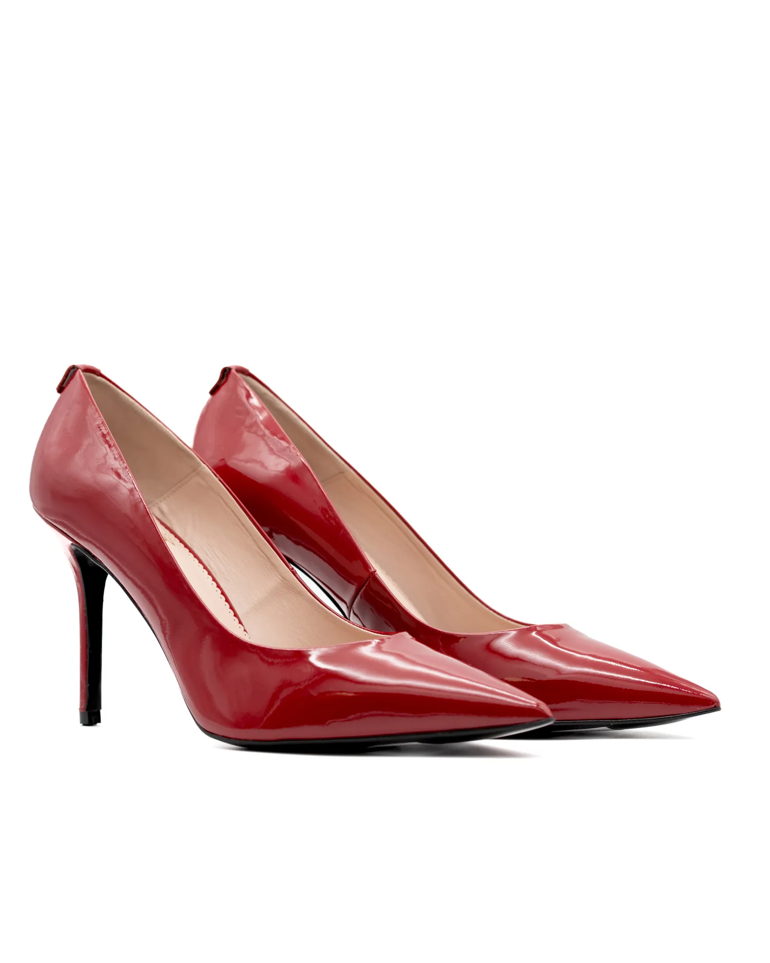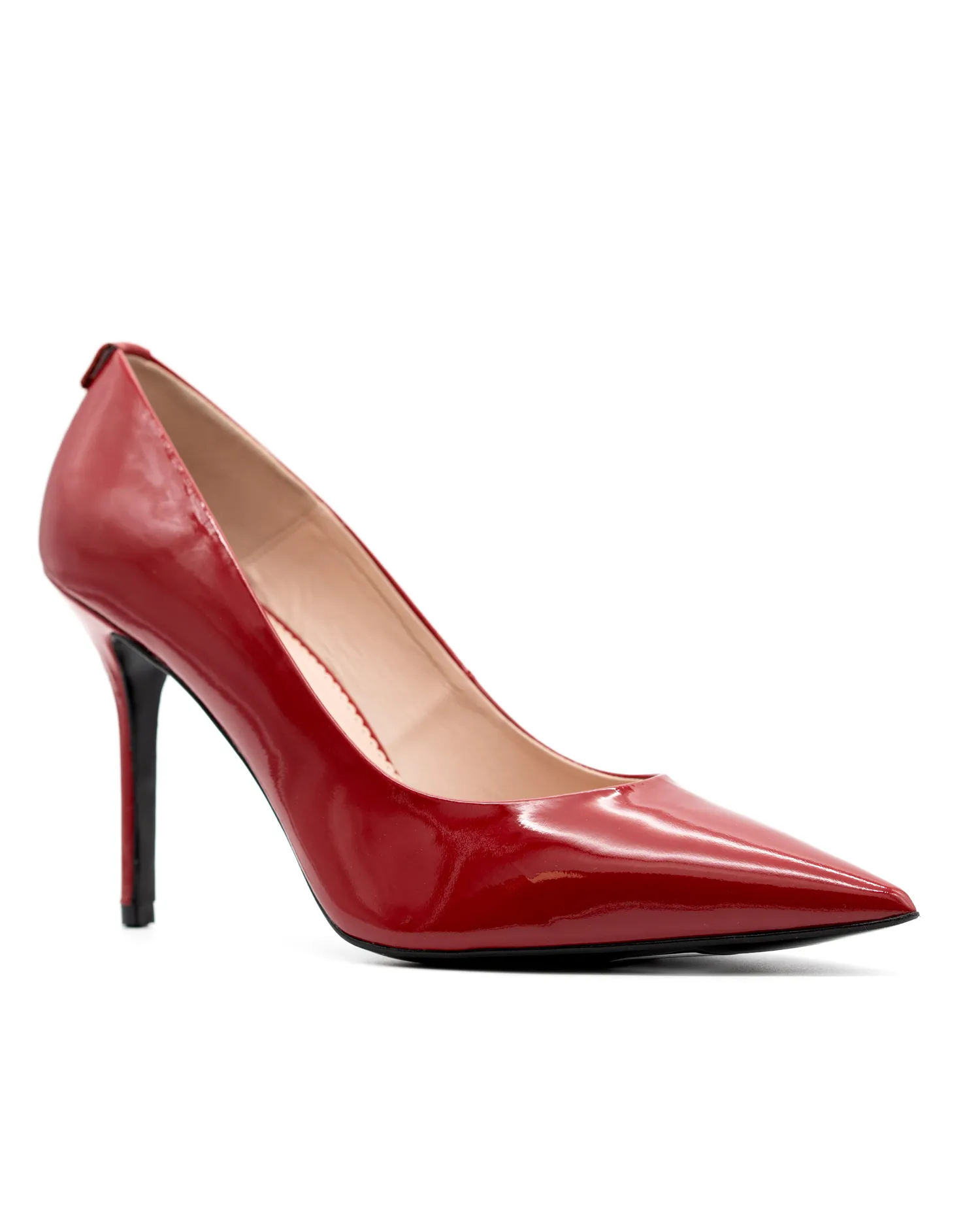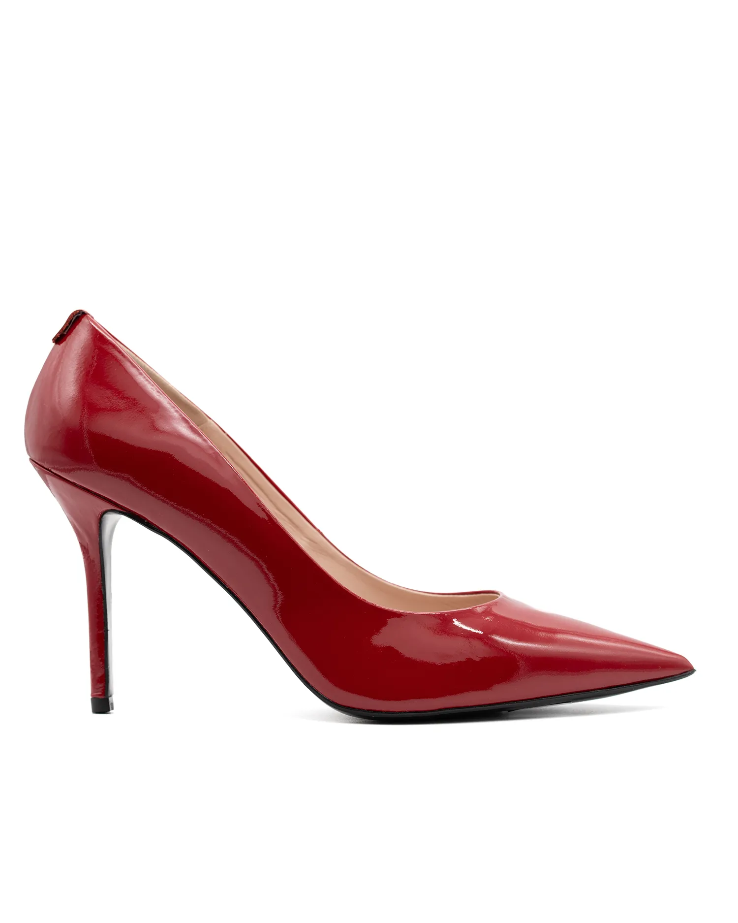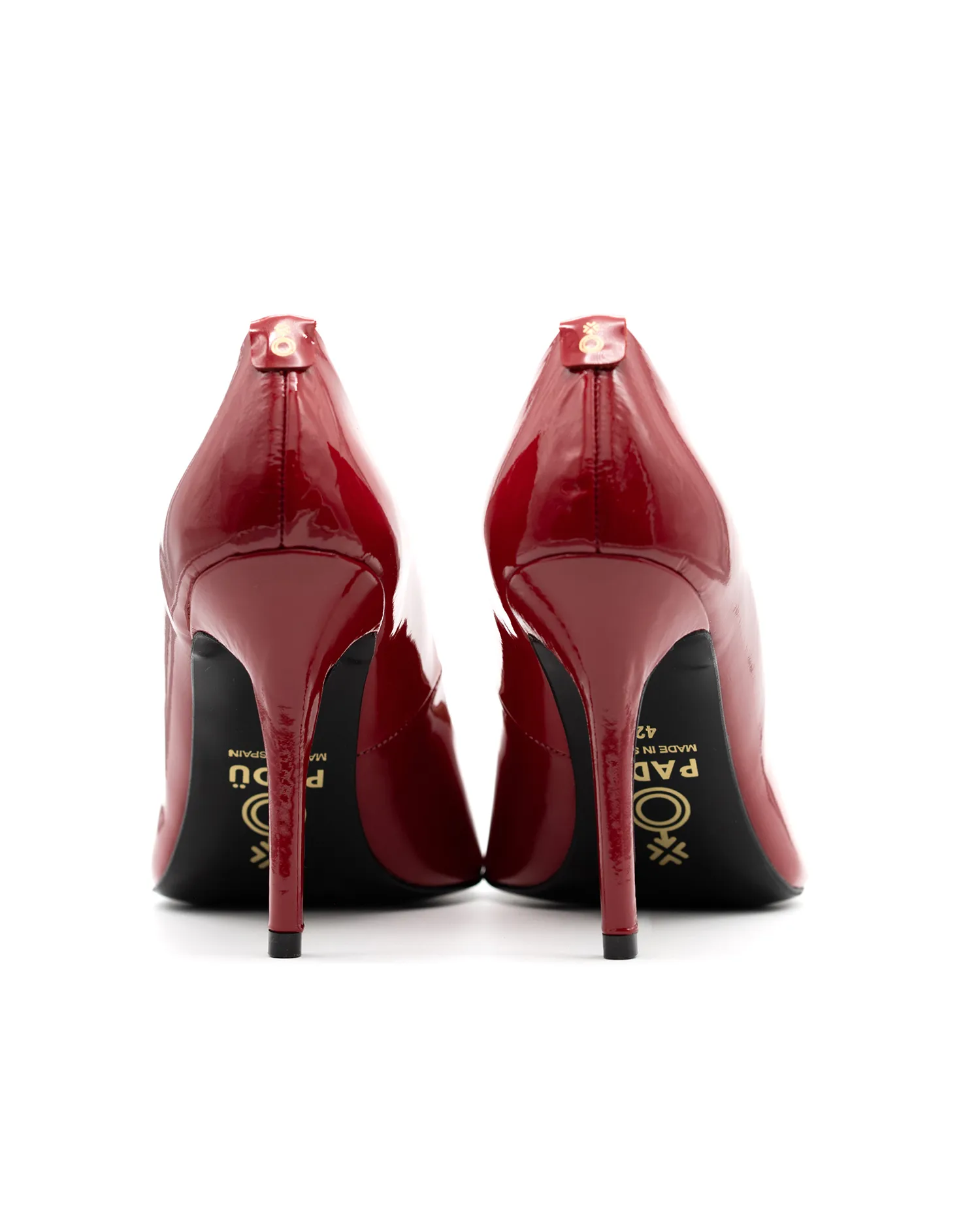 Stiletto en charol rojo intenso, diseñado para destacar con elegancia. Su acabado brillante refleja seguridad y carácter, ideal para ocasiones especiales donde quieras dejar huella.