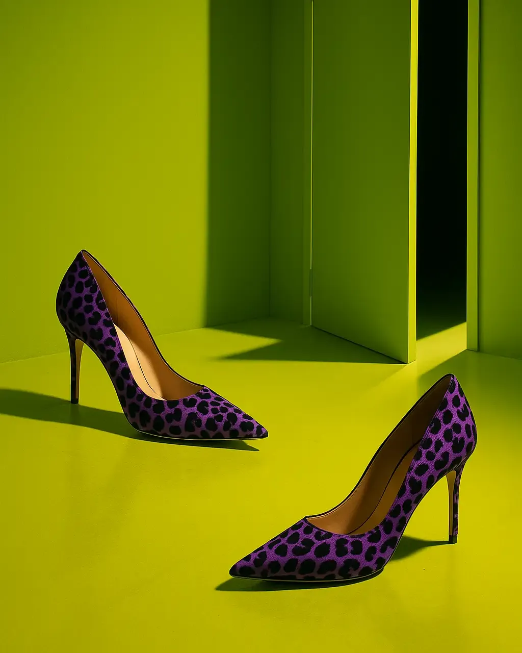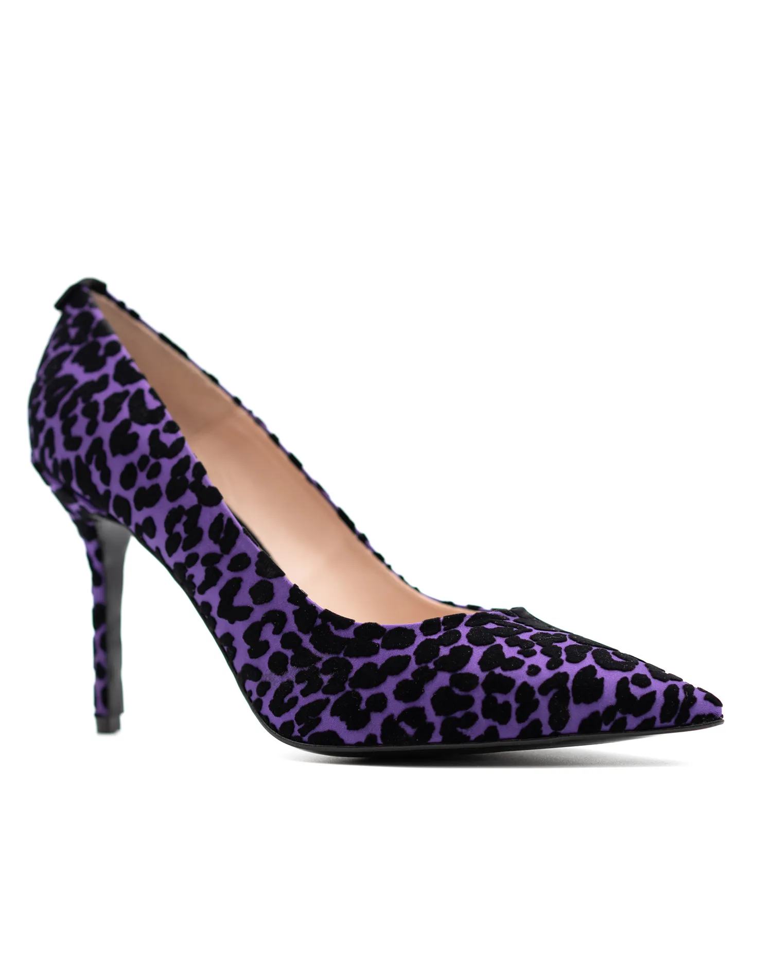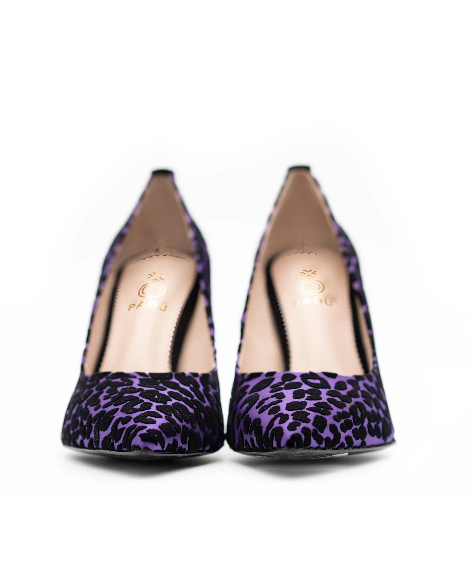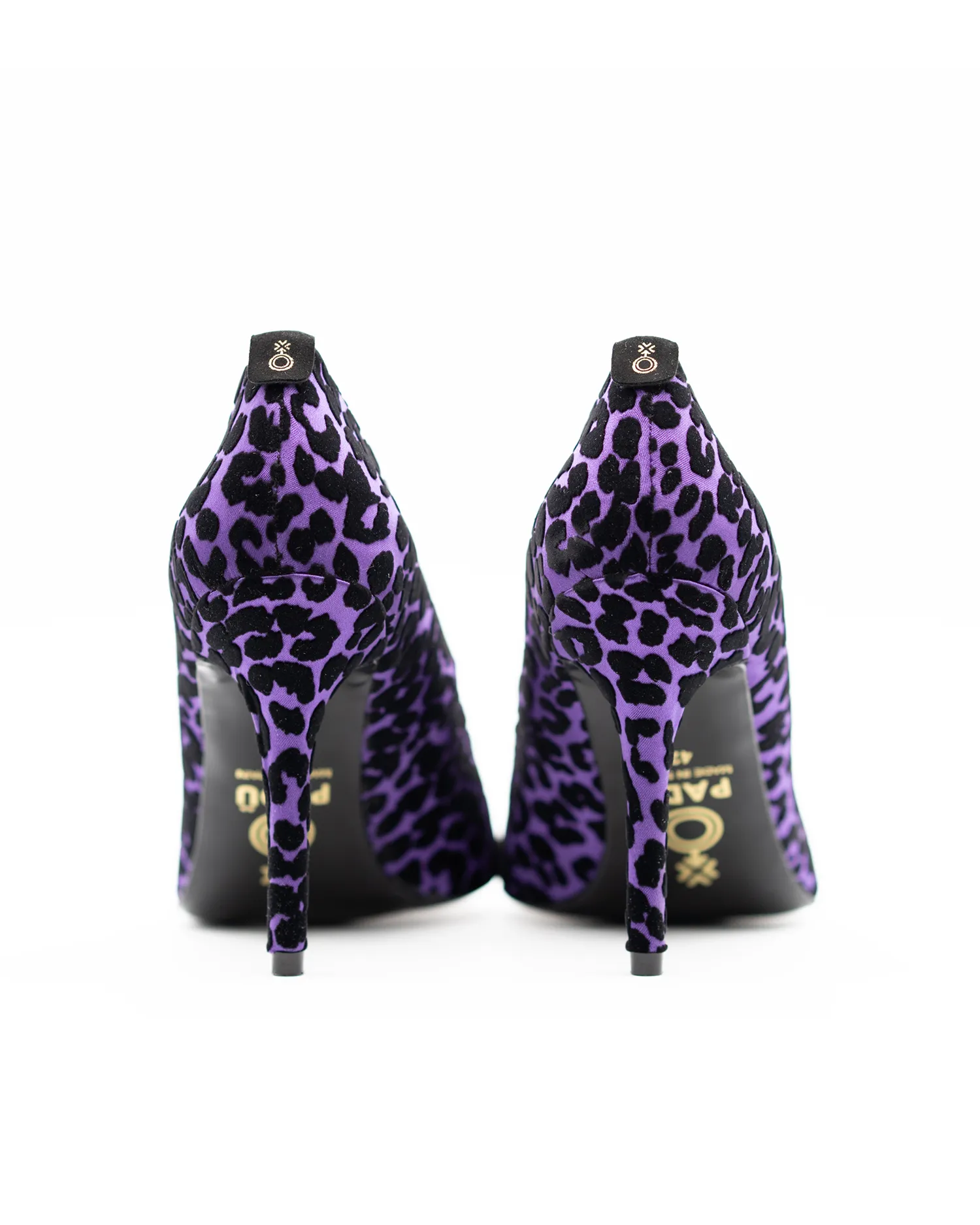 Stiletto con estampado exclusivo en animal print morado. Una pieza llamativa y sofisticada que aporta carácter y personalidad sin perder elegancia. Ideal para quienes buscan destacar con estilo.